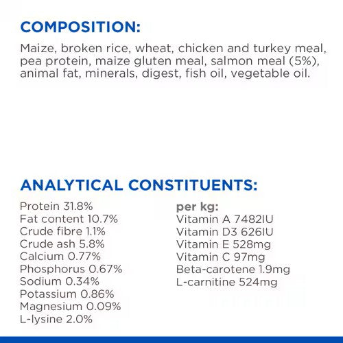 Hill’s Science Plan Sterilised Adult Dry Cat Food with Salmon is precisely balanced nutrition tailored to meet the needs of sterilised cats.